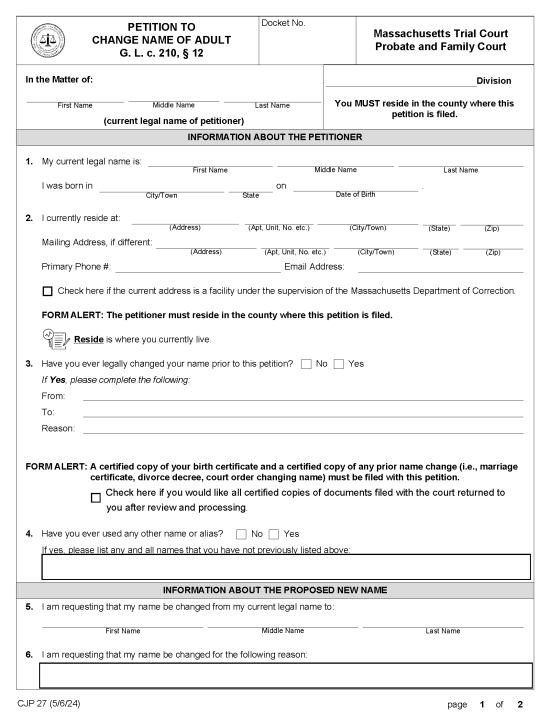 - Petition to Change Name of Adult (CJP 27) – Signed before a notary public.