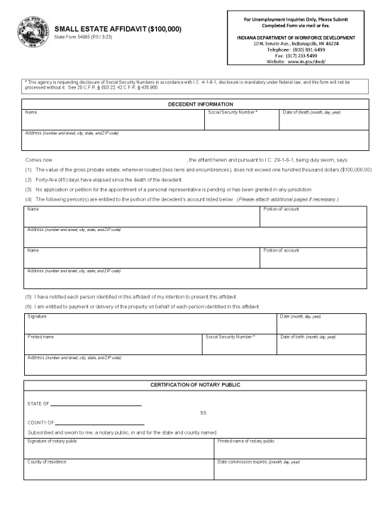 An heir of the decedent must fill out the Small Estate Affidavit and attach the following documents: