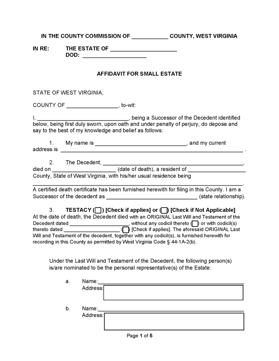 The Affidavit for Small Estate may be used if the following applies[4]: